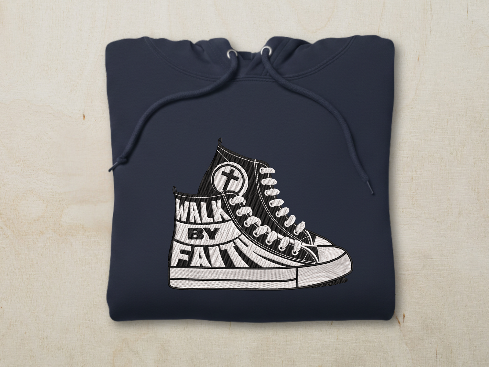Urban style with a timeless message. This isn’t just another layer; it’s a high-quality, heavyweight fleece designed for those who demand both durability and comfort. Featuring a detailed high-top sneaker embroidery with the “Walk By Faith” motif, this hoodie offers a structured, premium look that holds its shape through every wear.